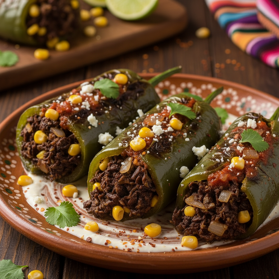 Chile relleno de Huitlacoche y queso
